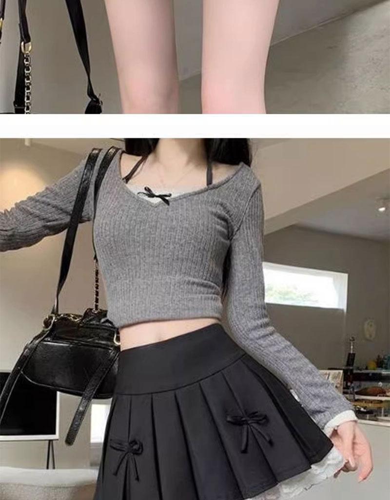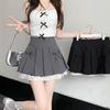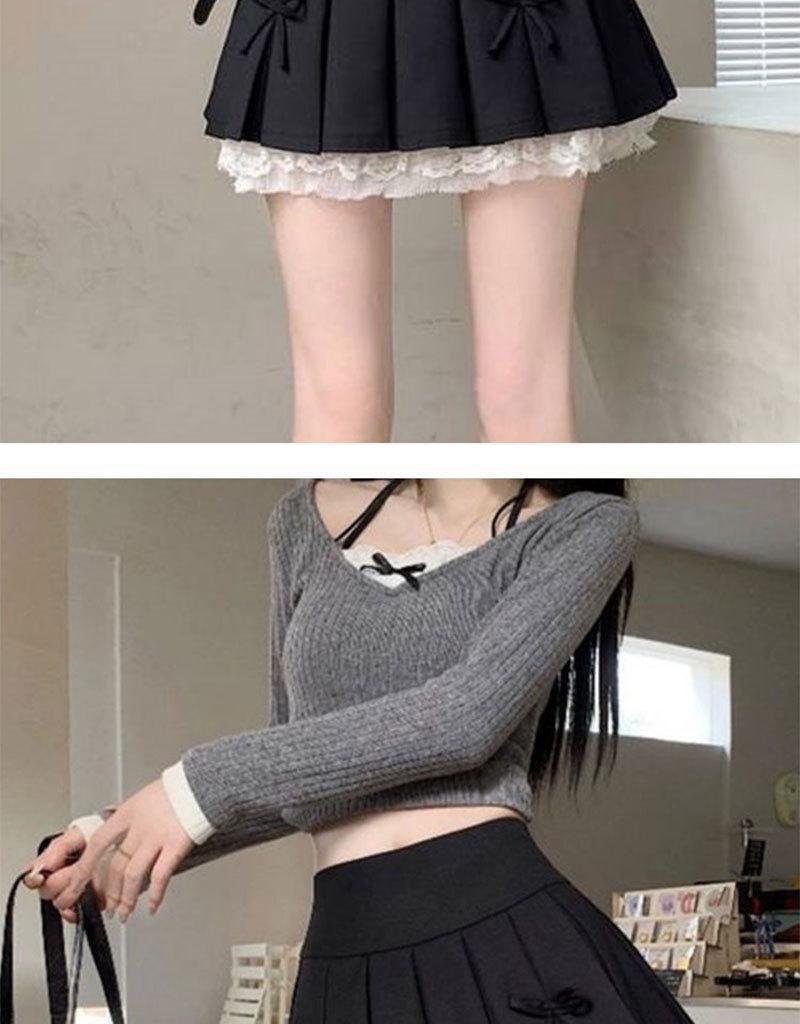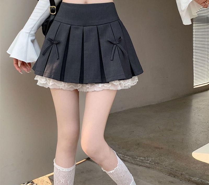 Saia Plissada Design para Mulheres Verão Cinza Renda Emenda Nicho Sexy Saia A-Line 2025 Novo Comprimento Médio