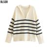 Exclusivo Transfronteiriço Outono e Inverno Novo Suéter Tricotado Feminino Casual Elegante Doce com Bloco de Cores e Padrão de Corações para o Dia dos Namorados