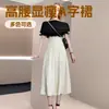 Saia Midi Lisa Bege Drapê Cintura Alta Emagrecedora Linha A para Mulheres Primavera e Verão Saia Longa Preta
