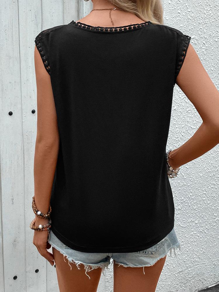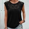 Verão 2024 Amazon Europeu e Americano Transfronteiriço Renda Patchwork Gola Redonda Regata Básica de Gola Redonda sem Mangas