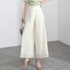 Calças de Perna Larga com Fenda para Mulheres 2025 Novo Branco Cintura Alta Soltas Emagrecendo Verão Calças Culotes Chiffon Fluido Calças Nove Pontos
