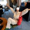 Terno Chic Relaxado Old Money_Camisa Envoltório de Linho Macio e Fresco com Lapela 2-Usos/Calças Air de Cintura Elástica