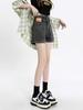 Shorts Jeans Preto Cinza Feminino Outono 2024 Novo Solto Cintura Alta Mergulhada Verão