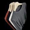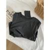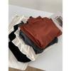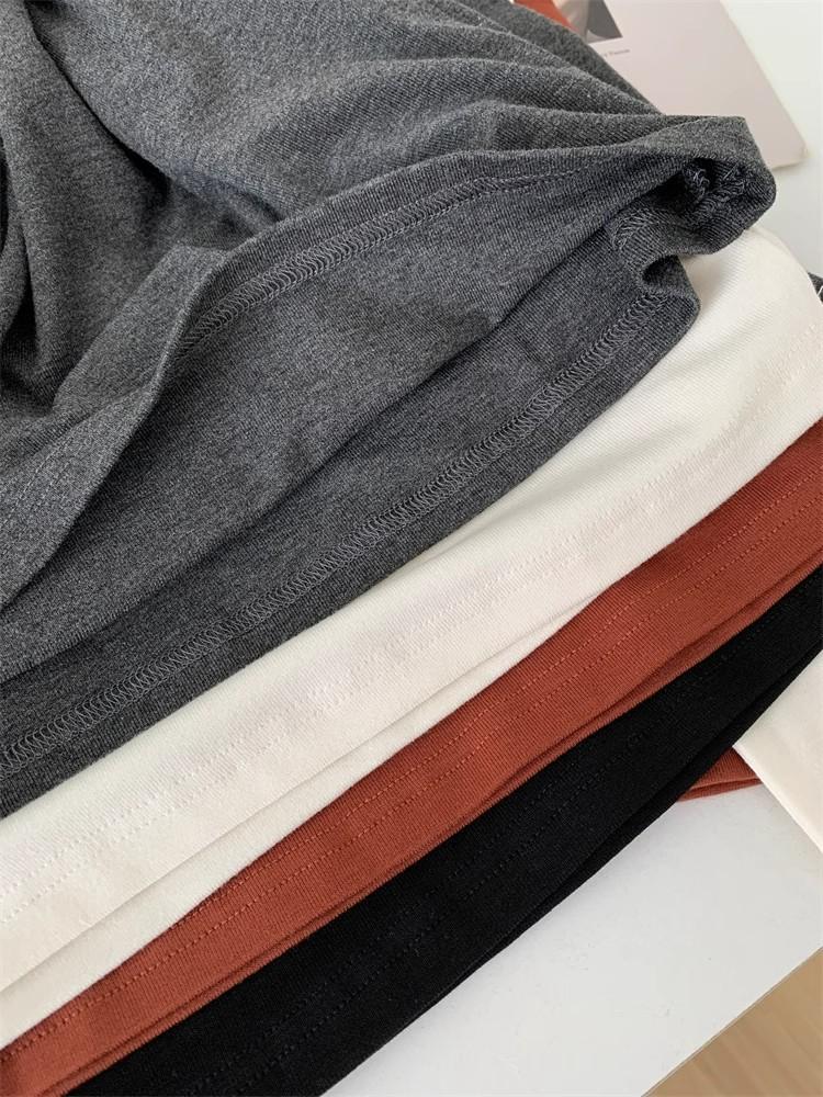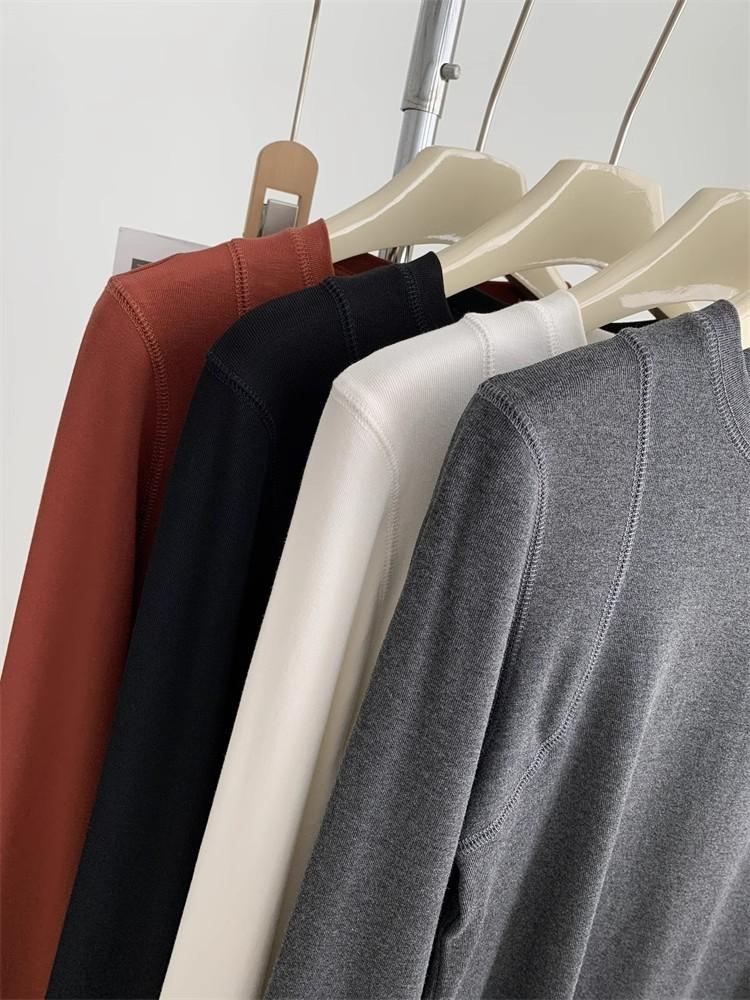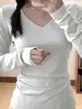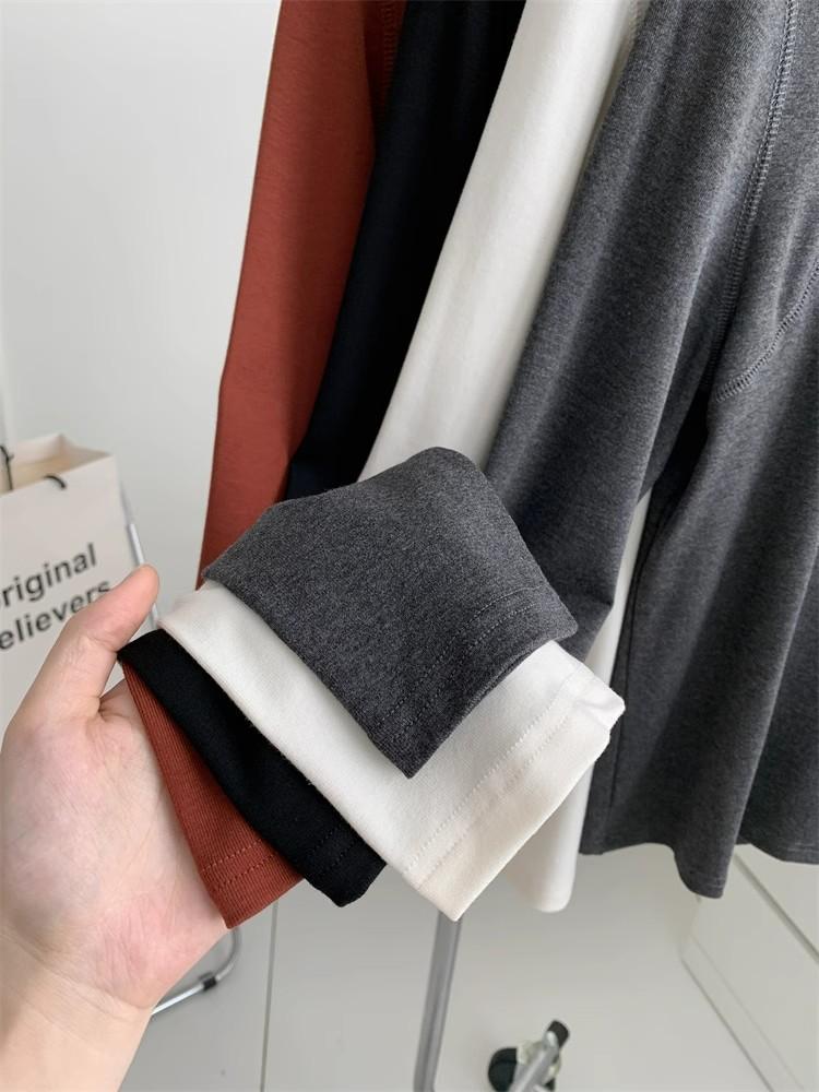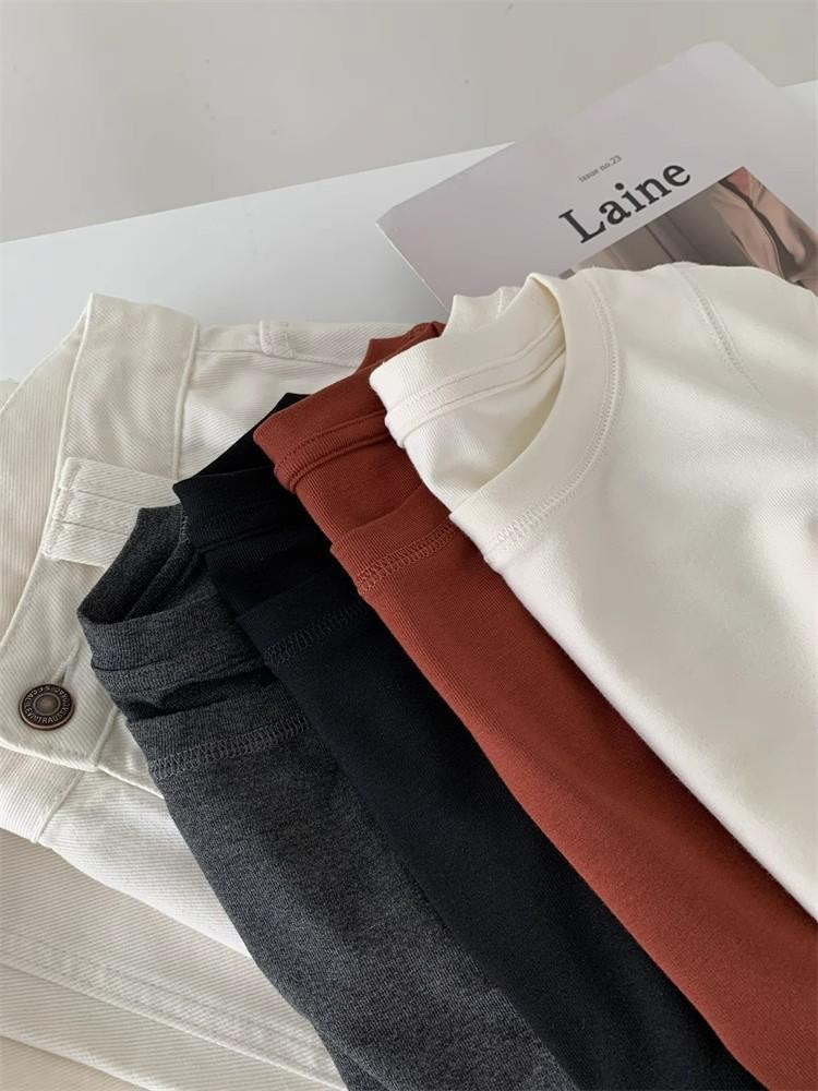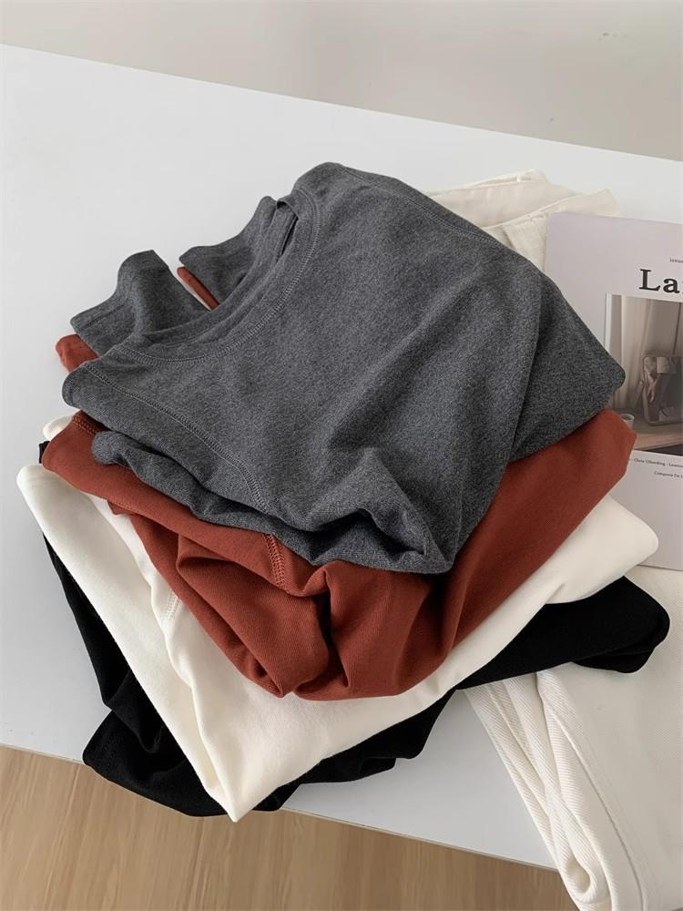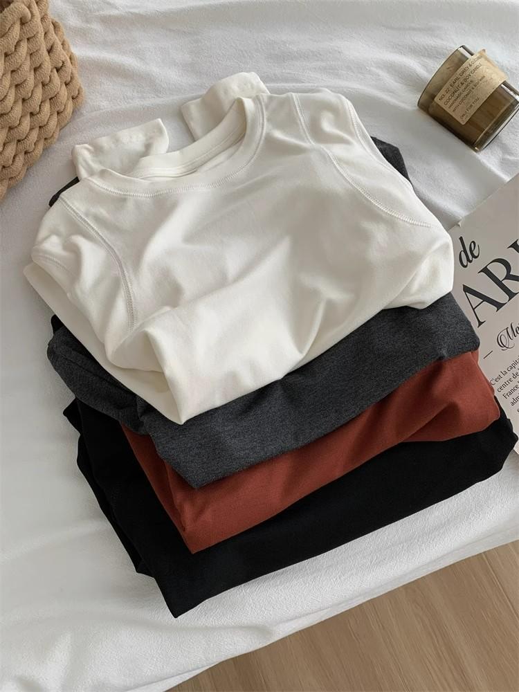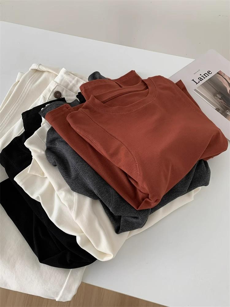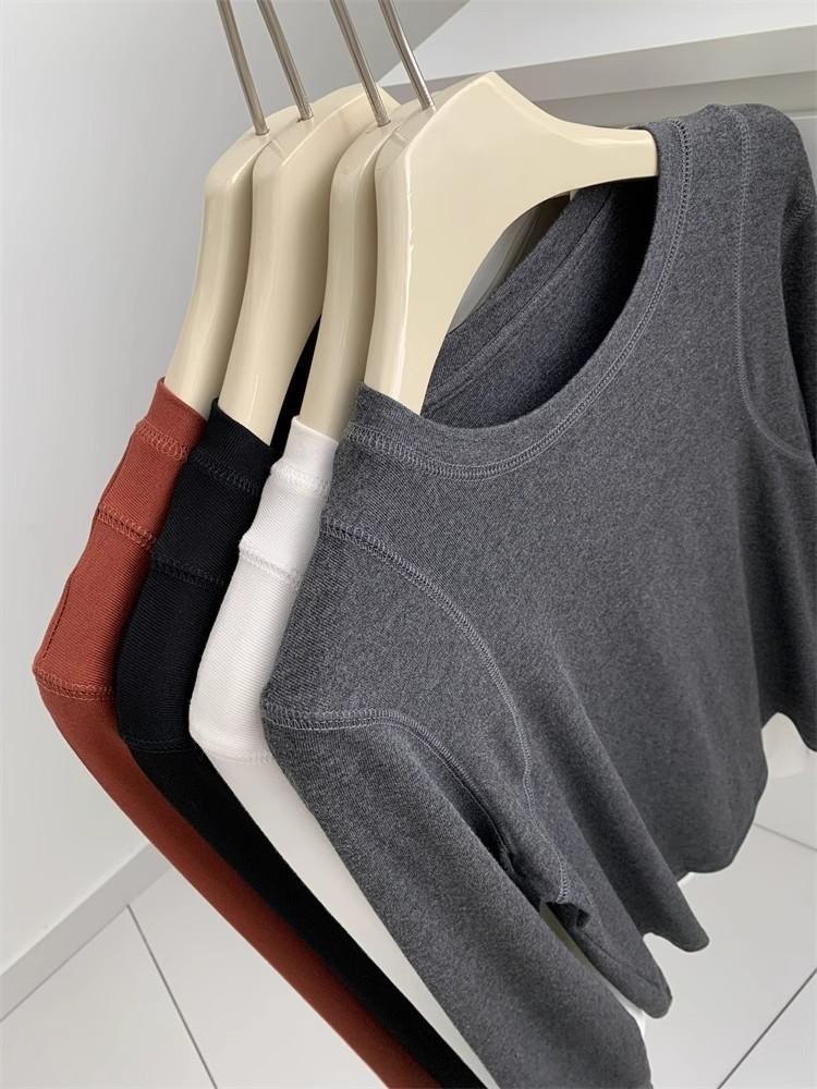 Design Sense Camiseta feminina de cor sólida com ombro costurado, outono e inverno, blusa interna básica, gola redonda, manga comprida, camisa básica