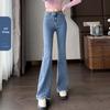 Jeans Rasgados de Cintura Alta em Cores Claras para Mulheres Primavera e Verão 2025 Novo Emagrecedor Barra Desfiada Slim Flare