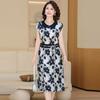 Vestido de Verão de Manga Curta da Mamãe, Roupas da Moda para Mulheres de Meia-Idade e Idosas que Reduzem a Idade, Saia Solta de Chiffon 2025 Novo Estilo