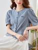 [Personalizado] Camisa Xadrez Gola Redonda para Mulheres, Manga Curta 2026 Novo Estilo de Verão Estilo Coreano Camisa Casual para Pessoas Baixas