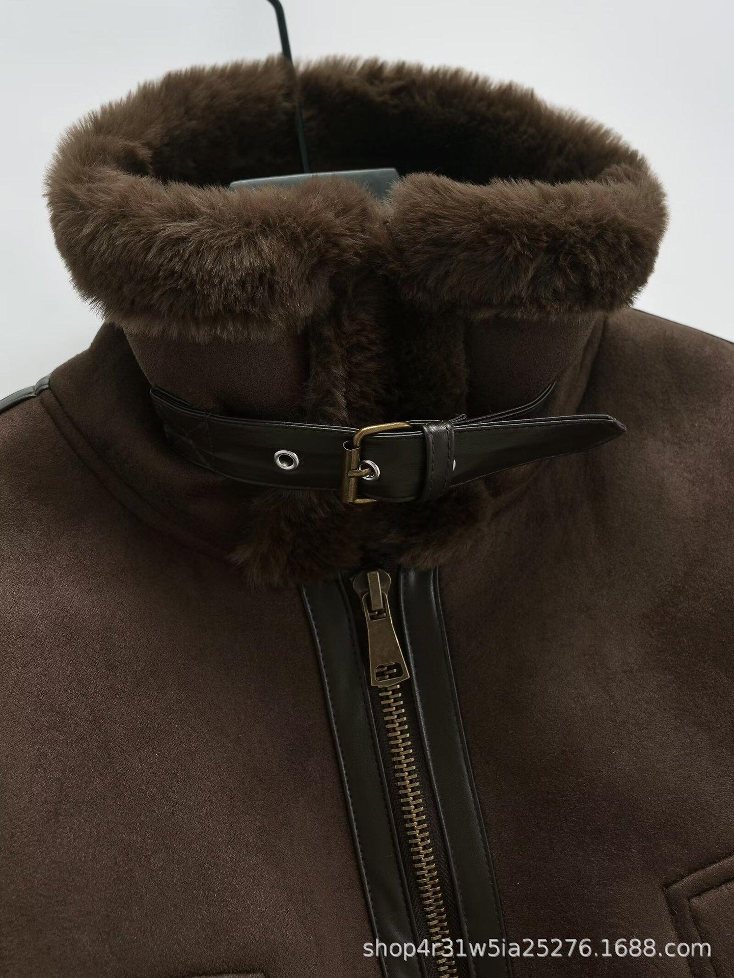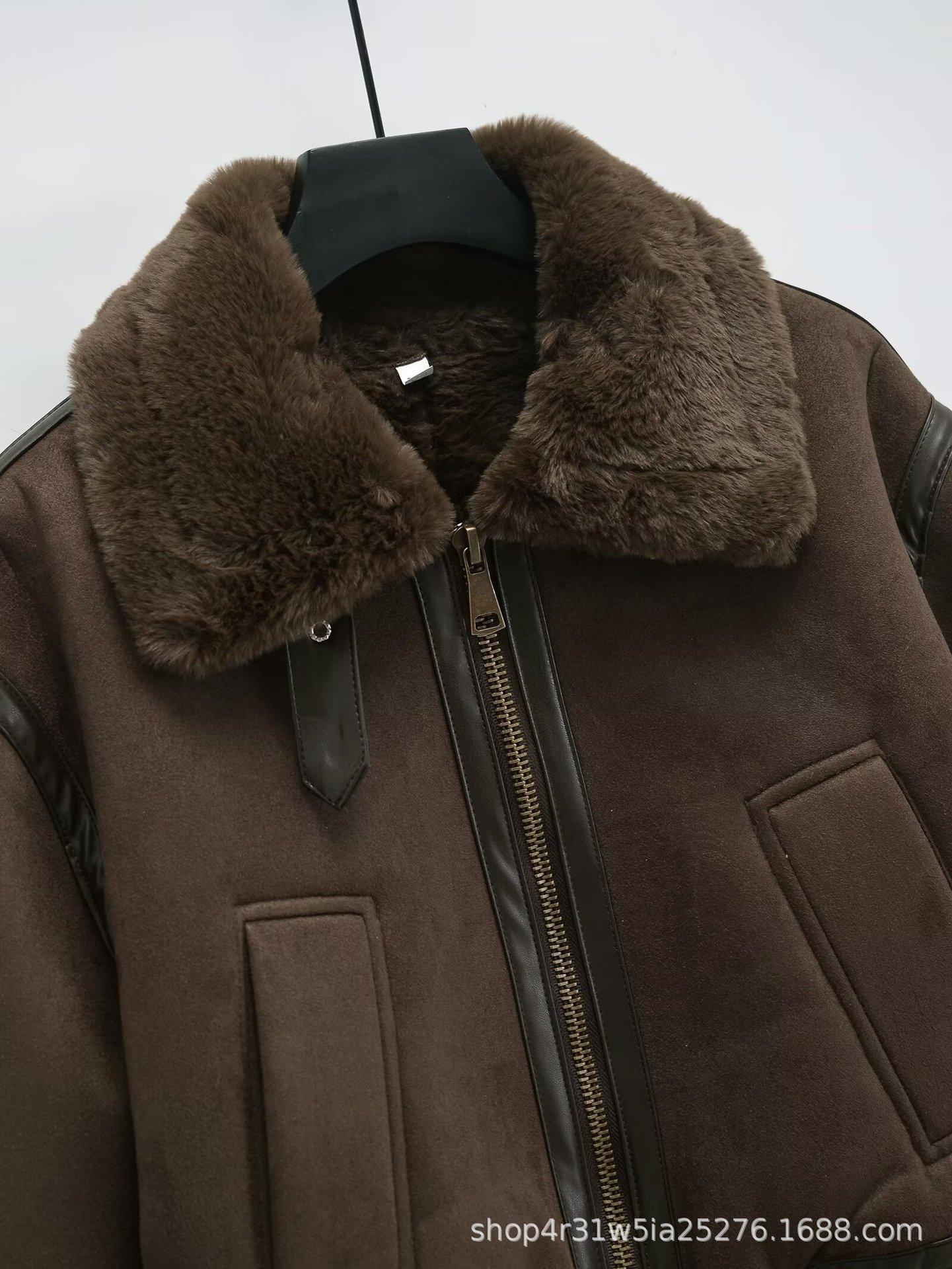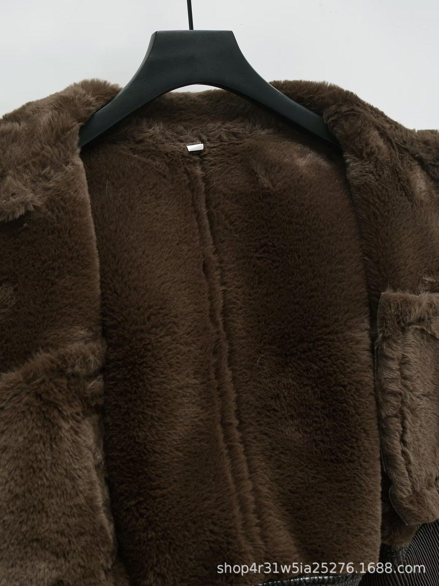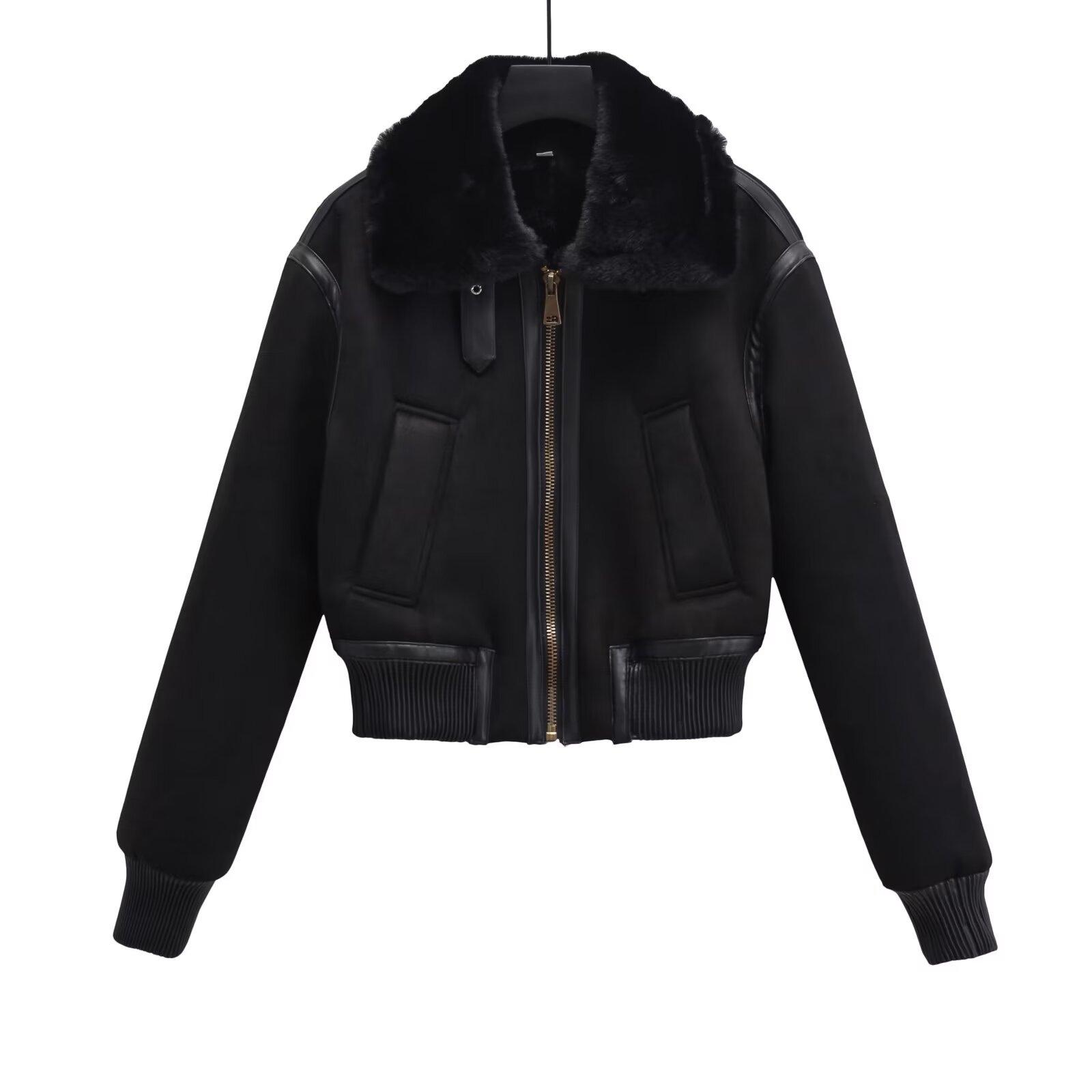 Amazon Europeu e Americano Atacado Transfronteiriço 2024 Inverno Novo Casaco Jaqueta Curto Fashion com Lapela Feminino Pele
