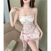 Estilo Europeu e Americano Sexy Decote de Ombro Único Cordão Renda Floral Saia Suspender Curta Verão Emagrecimento da Cintura Vestido de Férias