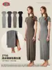 Seja Roupas Femininas 2025 Verão Estilo Europeu e Americano Lavado Vintage Vestido Longo de Manga Curta Vestido Tubinho Ajustado Vestido Emagrecedor com Fenda para Mulheres