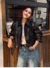 [Couro Vintage] Jaqueta Casaco Curto de Couro Americano Retrô Camada Superior Couro Curtido Vegetal Pele de Ovelha Feminino 2025