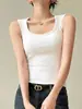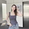 2025 Novo Botão Regata Camisole de Ombro Largo Feminina Cinto Bojo Peitoral Uso Interno Uso Externo Costas Lindas Gola Quadrada Combina com Tudo Regata Básica