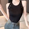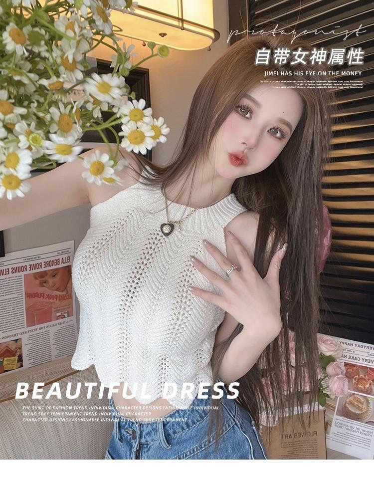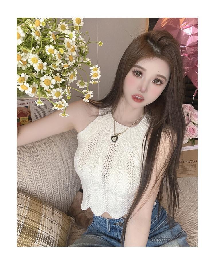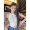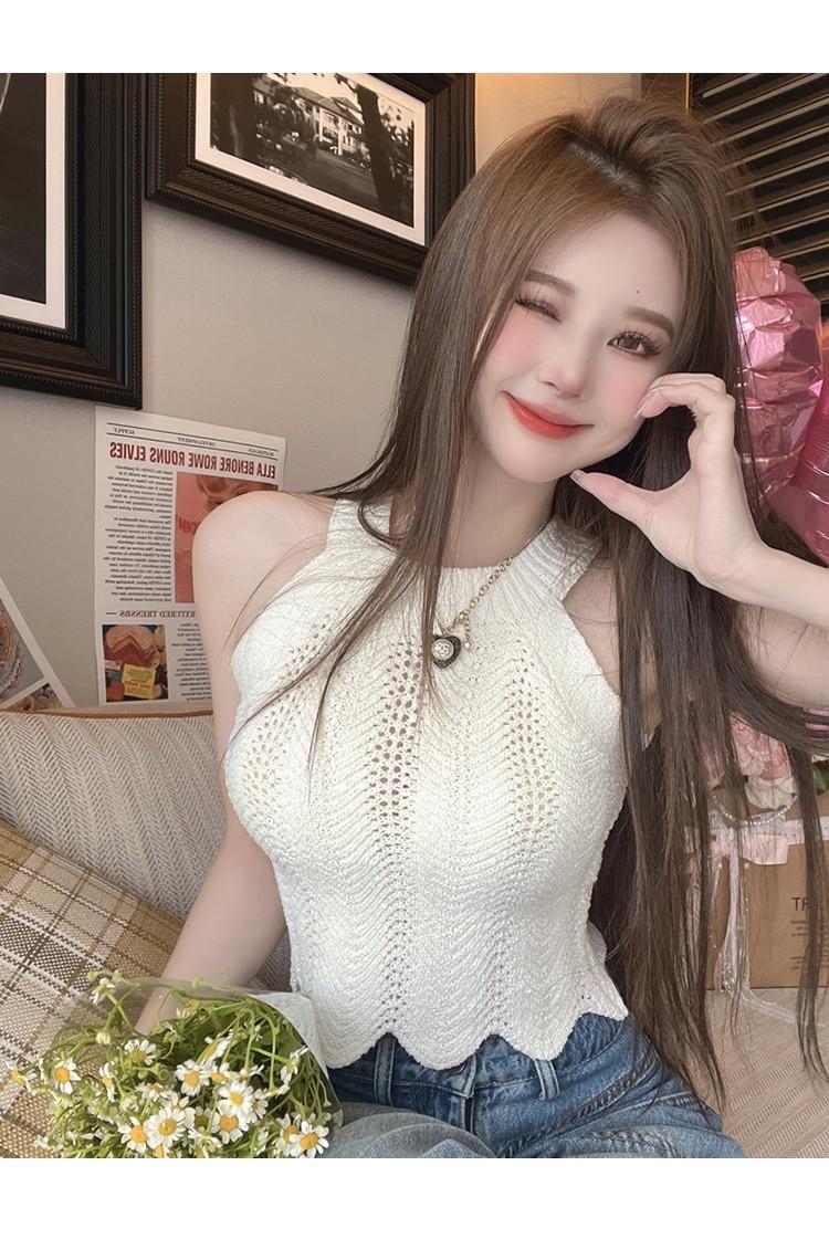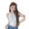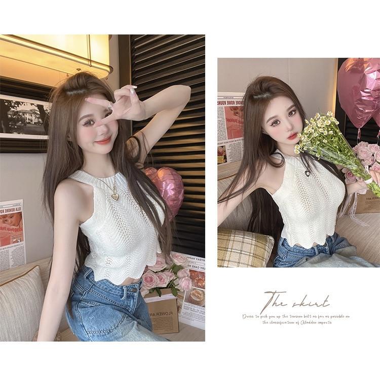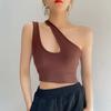 Design Francês Regata Halterneck Top de Um Ombro Primavera e Verão Super Fada Camada Interna Curto Sem Mangas