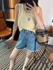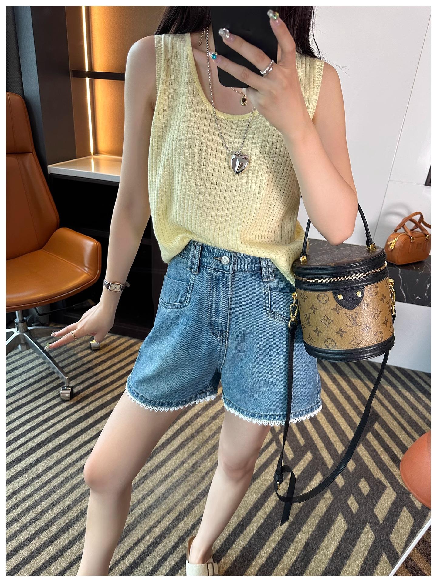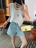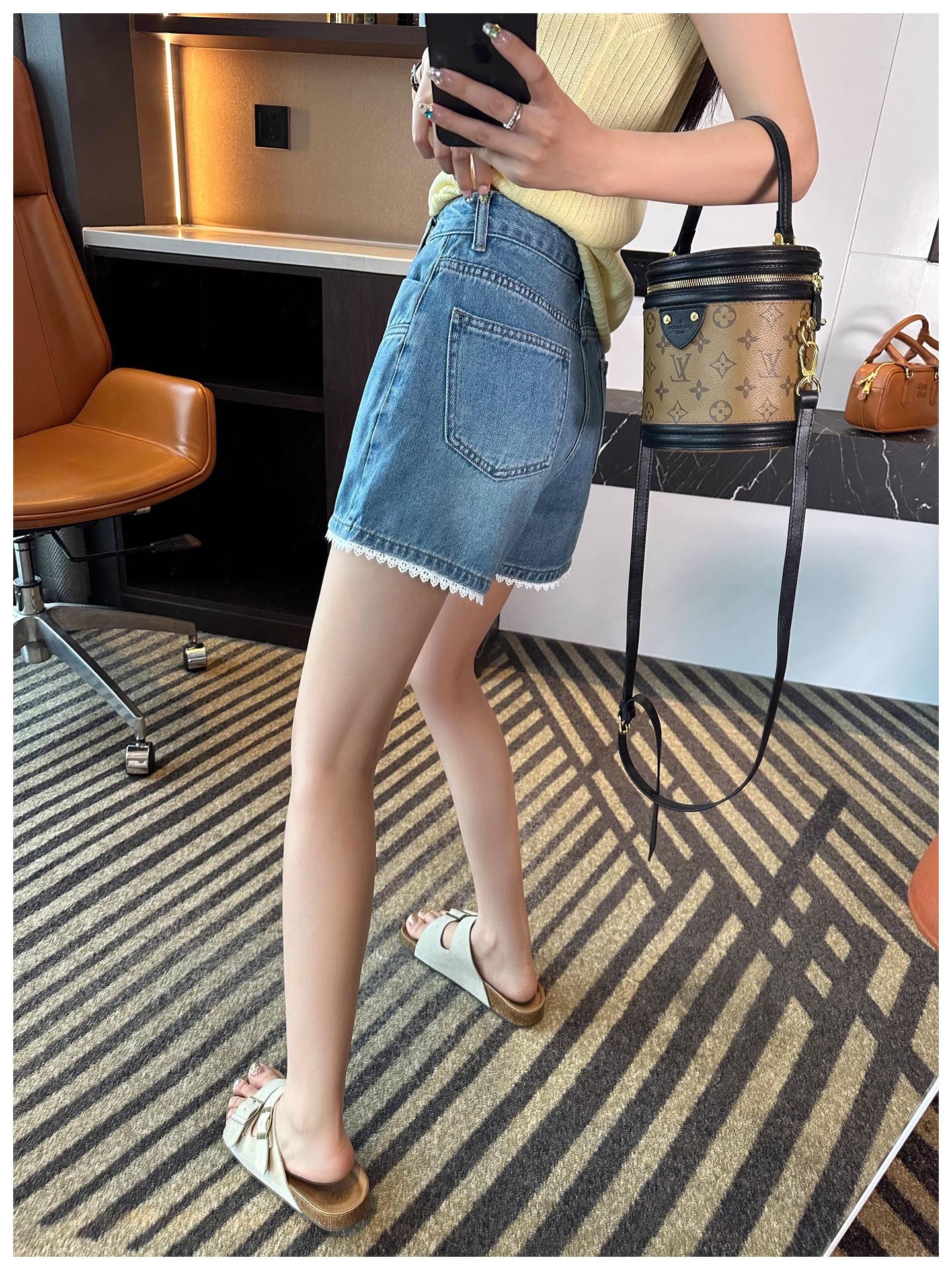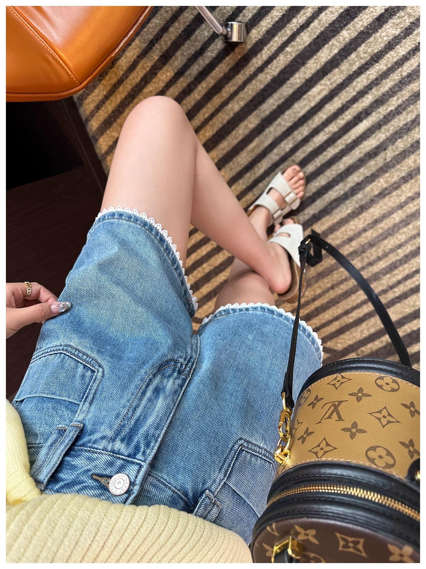 Shorts Jeans de Renda da Moda para Mulheres 2025 Verão Novo Cintura Alta Emagrecedor Corpo Pera Linha A Pernas Largas Hot Pants