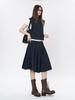 Saia Plissada Contrastante Retrô Coreana Nova de Primavera e Verão Redutora de Idade Estéreo A-Line Slim Casual para Mulheres