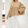 Suéteres Femininos Europeus e Americanos Transfronteiriços 2025 Outono e Inverno Amazon Pulôver Gola Redonda Solto Retrô Torcido Feminino Confortável Casual