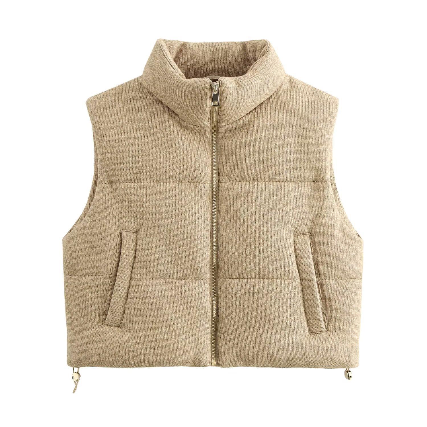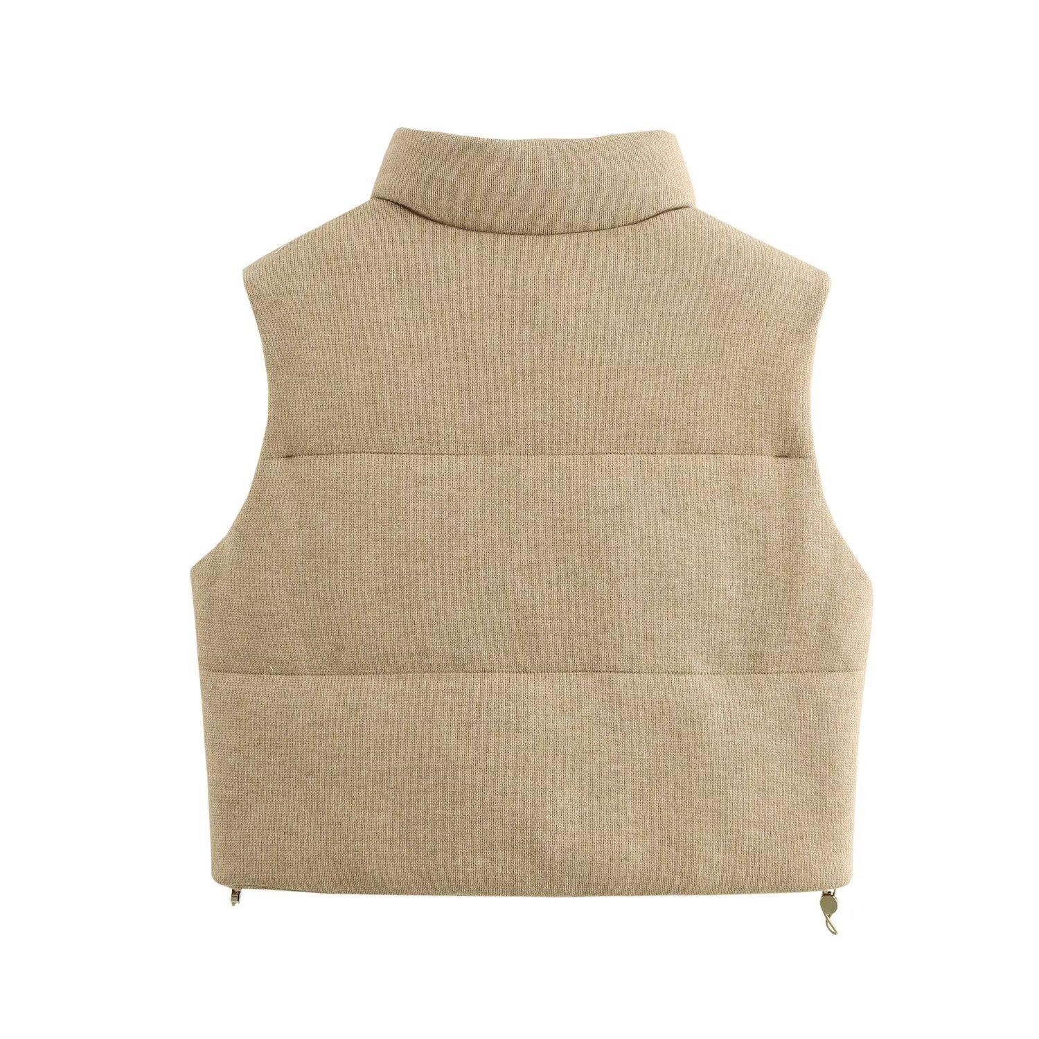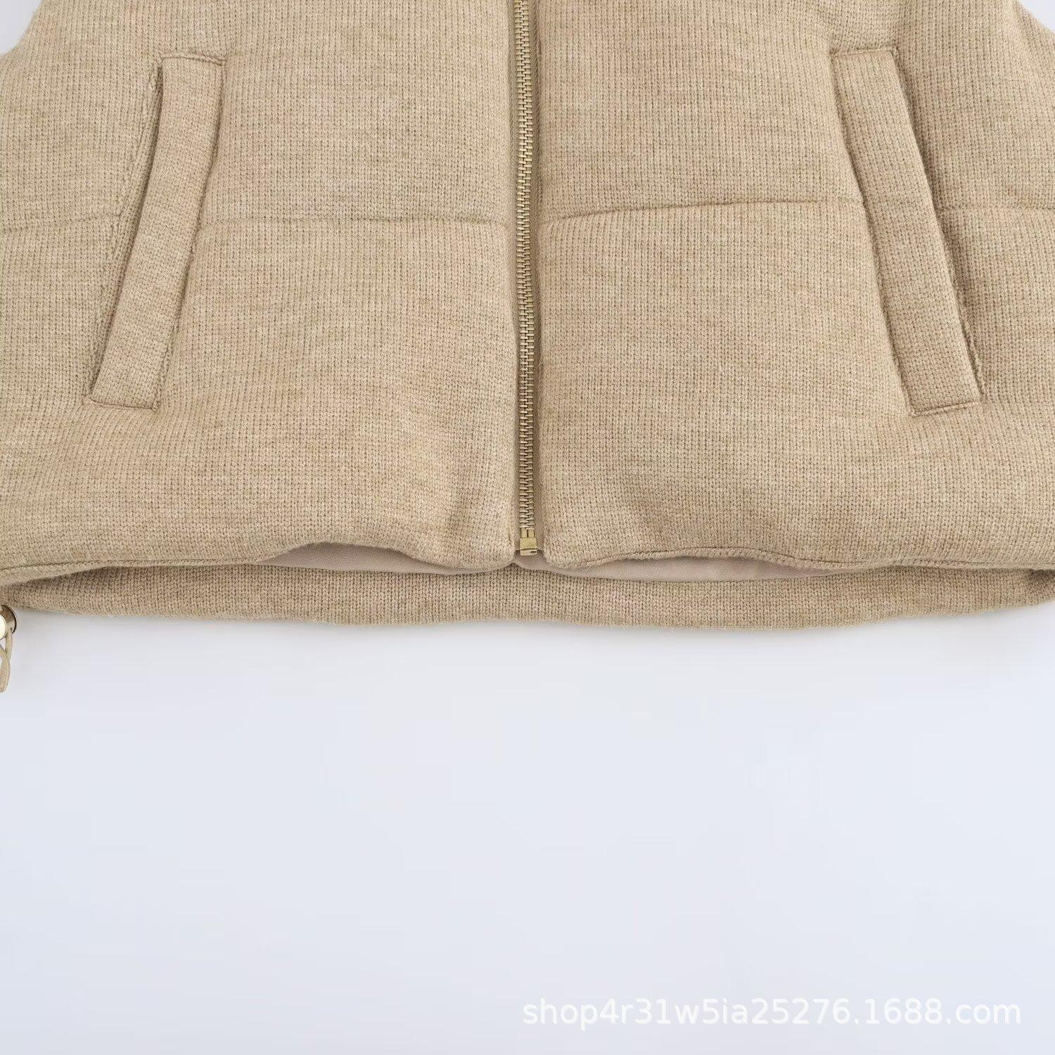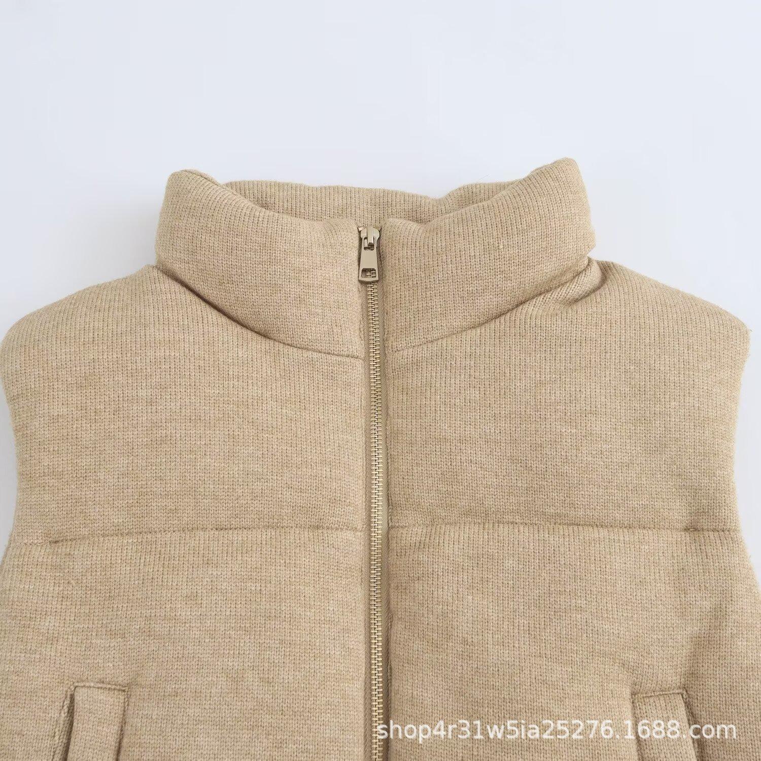 Estilo Europeu e Americano 2024 Inverno Colete Jaqueta Tricotada Acolchoada de Algodão Feminino com Gola Vertical Cor Sólida Casual Combina com Tudo Jaqueta Colete Acolchoado