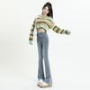 Jeans Micro-Flare de Cintura Alta para Mulheres 2025 Primavera e Verão Novo Estilo Design de Barra Desfiada Elástico Modelador Calças Ferradura