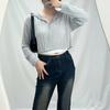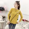 Suéter Tricotado Feminino Bordado com Torcido e Decote V de Manga Longa para Primavera