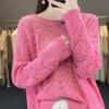 Suéter Tricotado Xale Vazado Feminino Casual Simples Versátil Tecido Respirável Leve, Macio, Confortável e Solto Tricotado Manga Curta