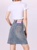 Saia Jeans de Bolso com Cintura Alta para Mulheres, Saia Bodycon Pequena Modeladora, Minissaia A-Line Curta Hot Girl Anti-Exposição