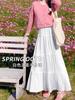 Saia Midi Branca de Cintura Alta em Linha A para Mulheres, Novo Estilo Primavera e Outono 2026, Saia Delicada Estilo Francês com Babados tipo Bolo para Figuras Baixas