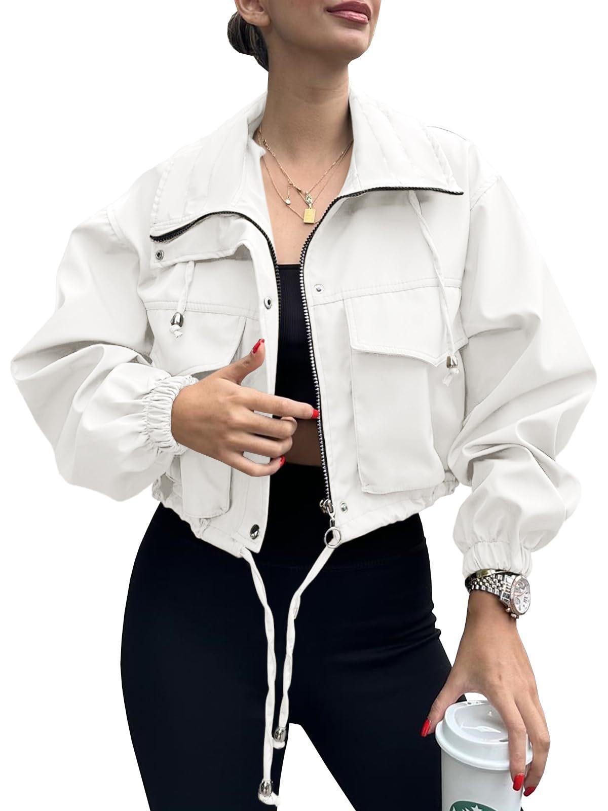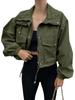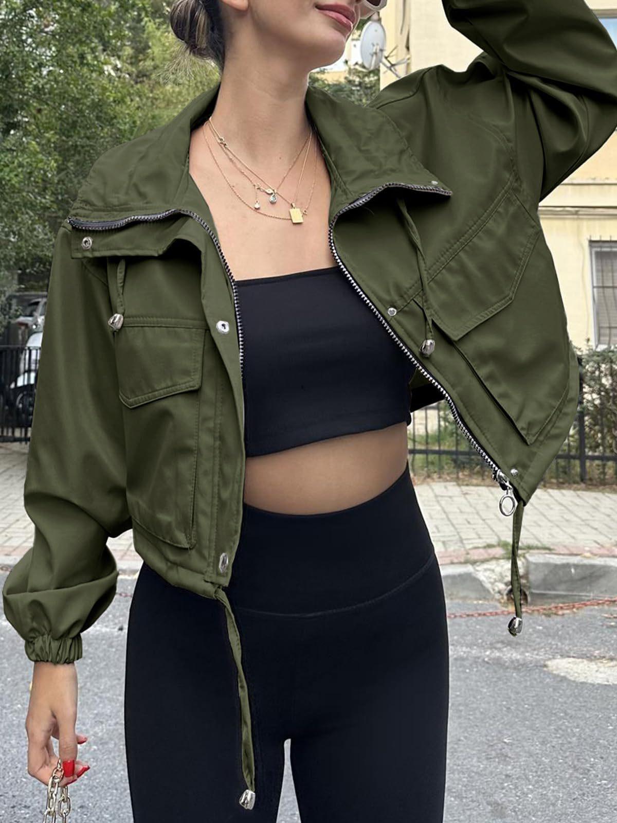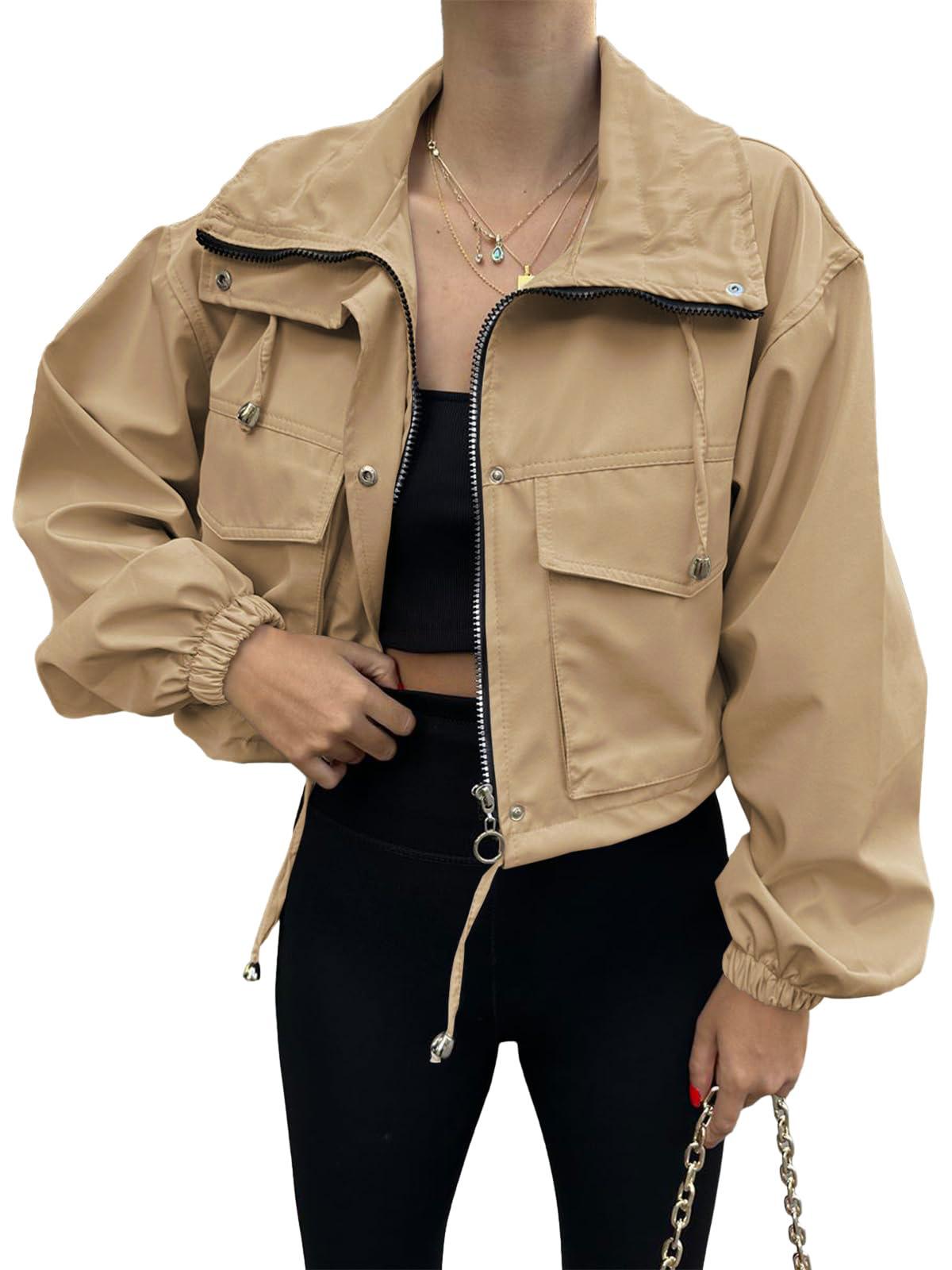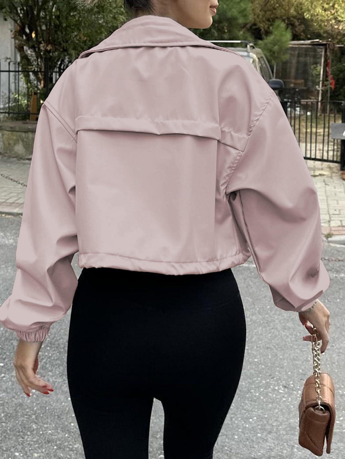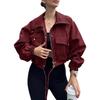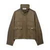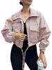 Amazon 2025 Transfronteiriço Europeu e Americano Outono Novo Jaqueta Curta Feminina Cor Pura Jaqueta Corta-Vento com Zíper