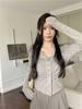 Desejo Puro Garota Sexy Corrente Clavícula Ombro Colar Camiseta Irregular Elegante Combina com Tudo Ajustada Emagrecimento Top de Manga Longa