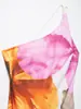 Atacado de Comércio Exterior Transfronteiriço 2025 Verão Novo Vestido Assimétrico de Alças Estampado com Posicionamento Europeu e Americano Feminino