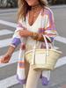 Moda Feminina Europeia e Americana Jaqueta Tricotada Listrada de Comprimento Médio Outono Novo Cardigã Casual Solto de Manga Comprida para Mulheres