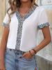 Europeu e Americano Transfronteiriço Amazon Estampado Casual Decote V Top 2024 Verão Camiseta Leve, Solta, Casual e Versátil