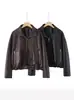 Jaqueta Bomber Retro Estilo Europeu e Americano Gola Alta Casaco de Couro Outono e Inverno Nova Moda Versátil Solto Casual Top