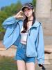 Roupa Leve de Proteção Solar Jaqueta Curta Casual Feminina com Cores Contrastantes 2025 Verão Novo Moda Europeia Jaqueta Versátil Top com Capuz