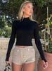 Roupas Femininas Estilo Europeu e Americano 2025 Verão Nova Moda Ajustada Barriga de Fora Manga Longa Tricô Tops Atacado Comércio Exterior