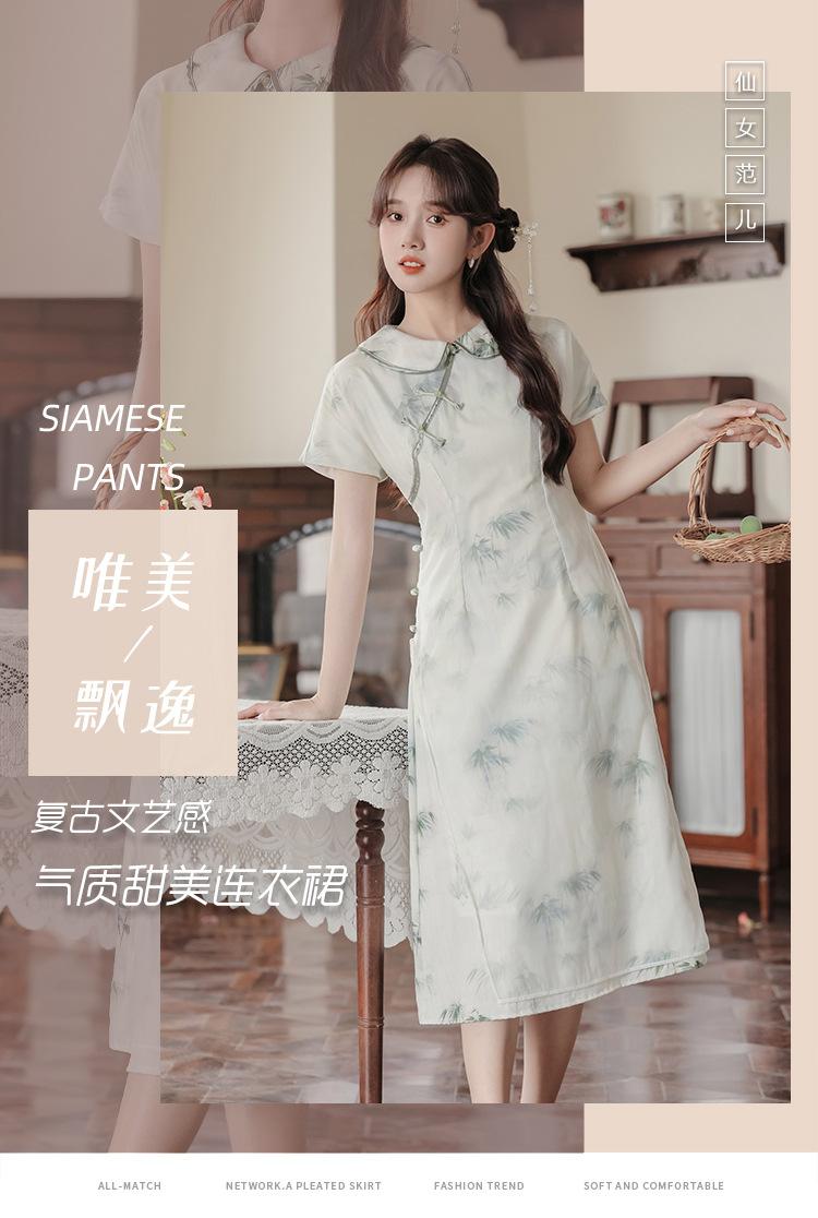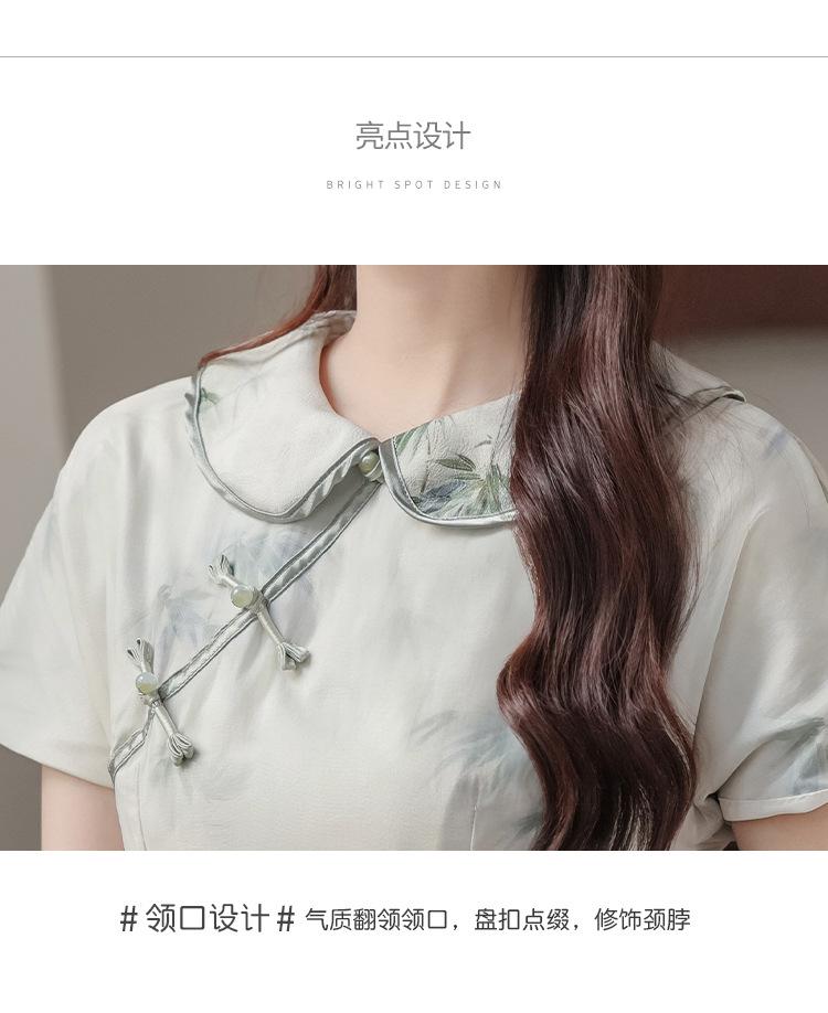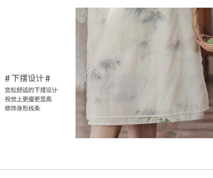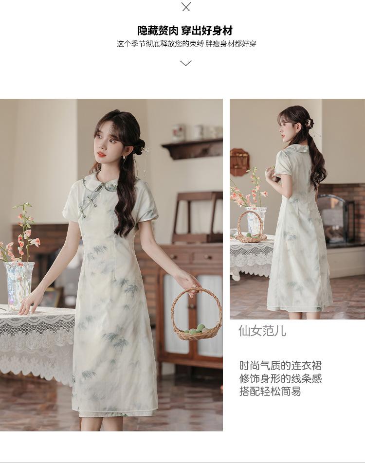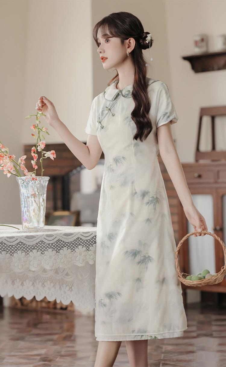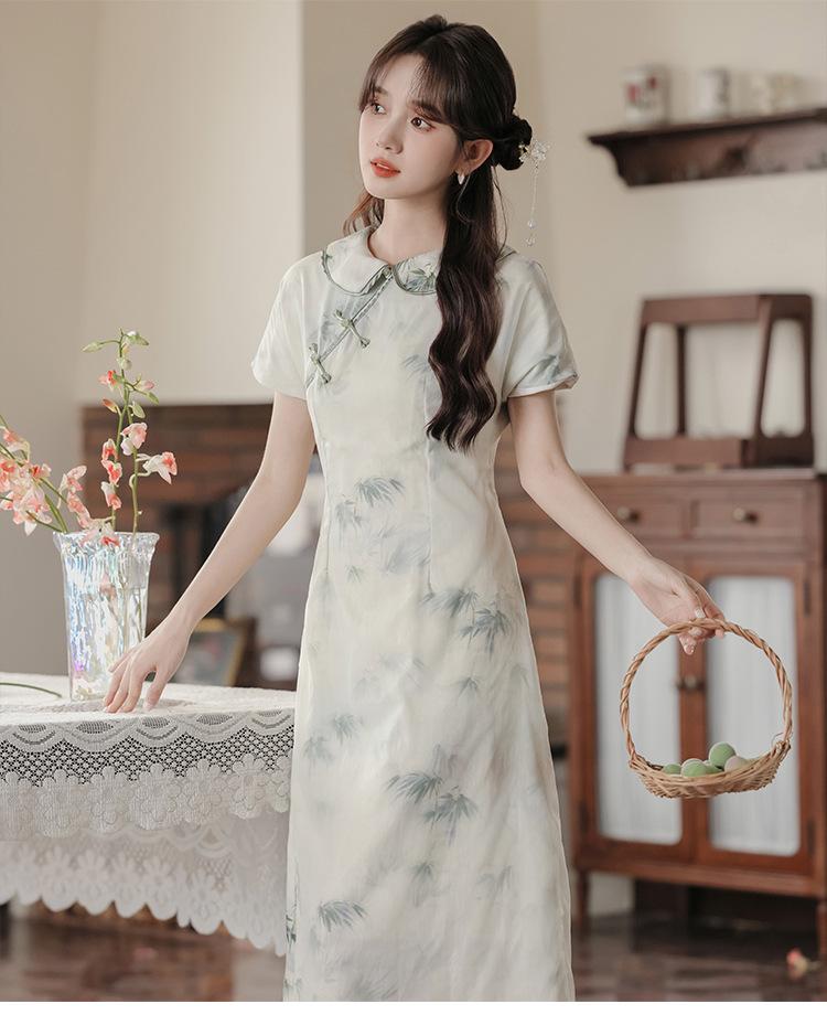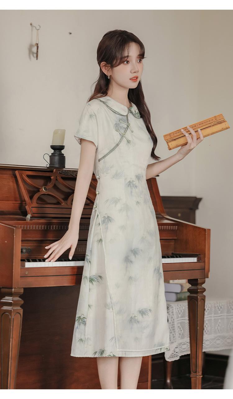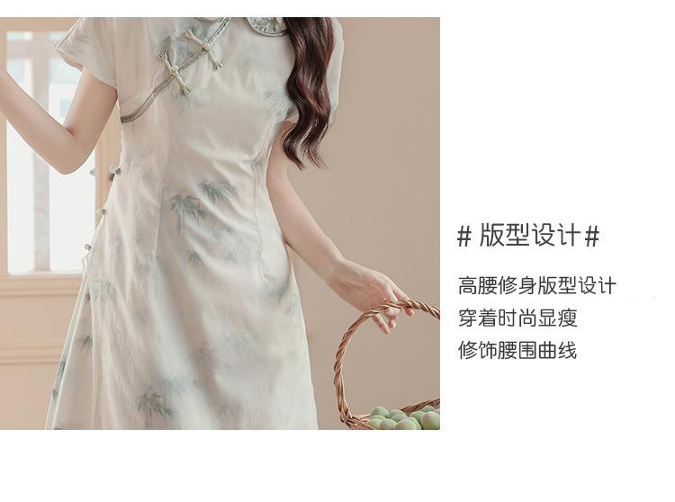 Roupa Feminina 2025 Verão Treze Linhas Novo Breu Bambu Cante Vestido Novo Estilo Chinês Saia Elegante Verde Menta Diário