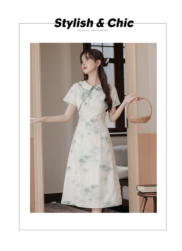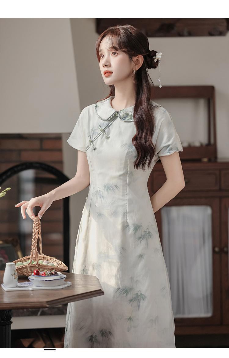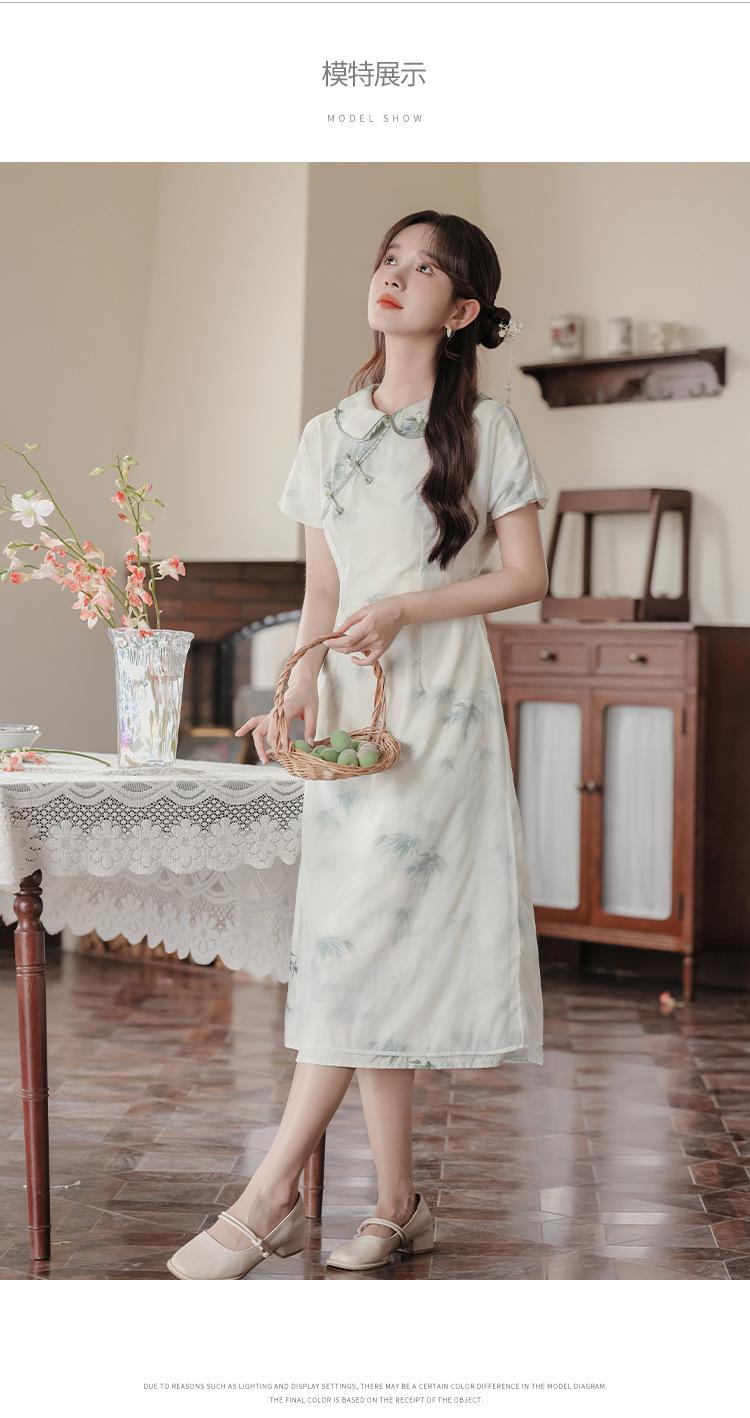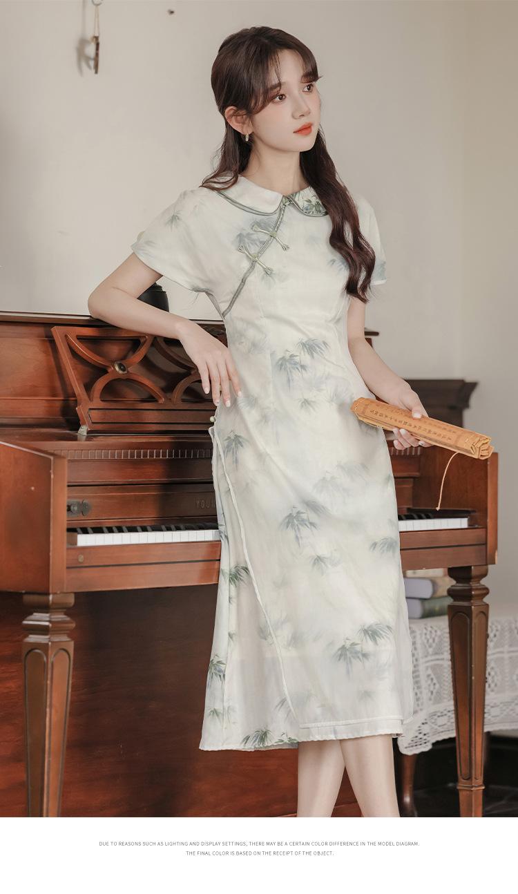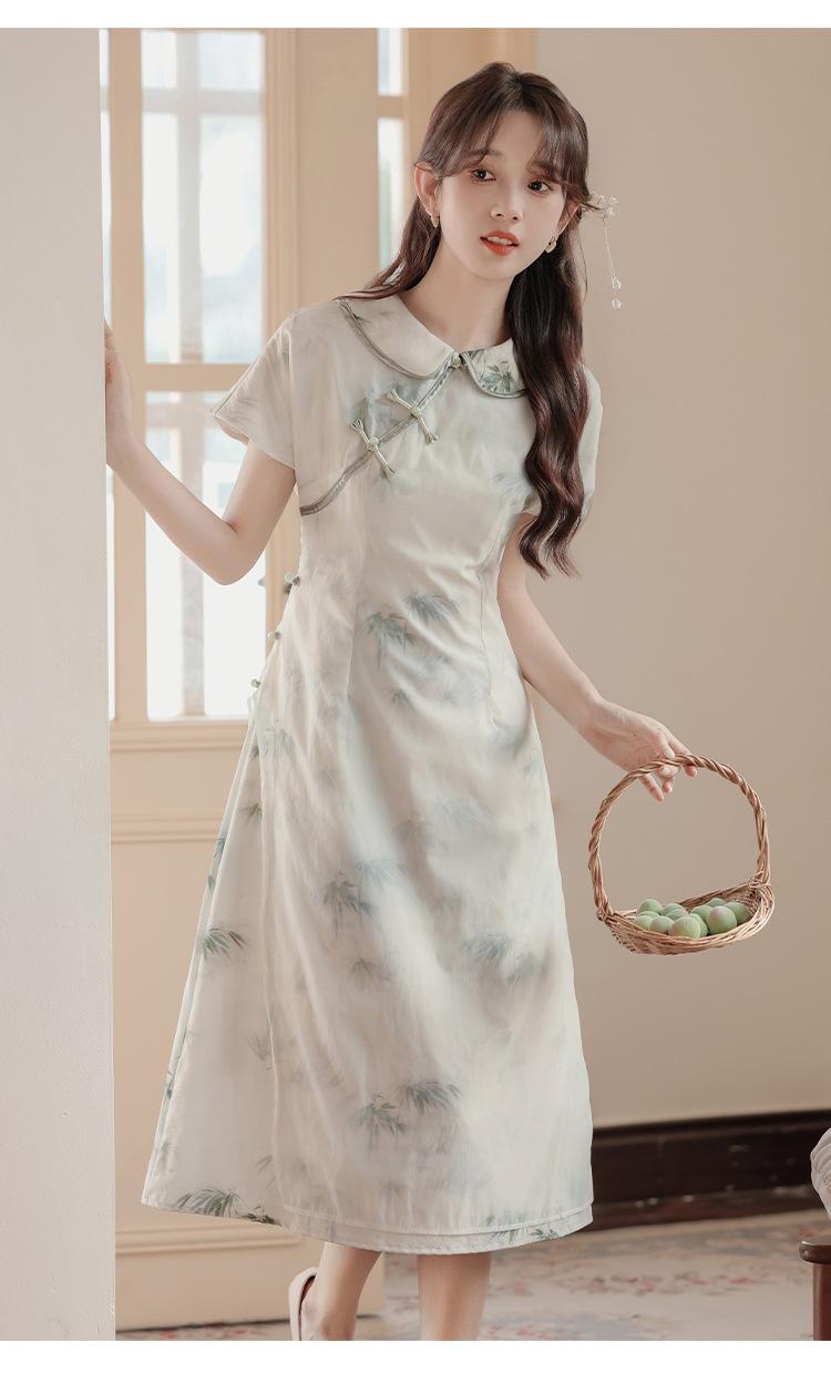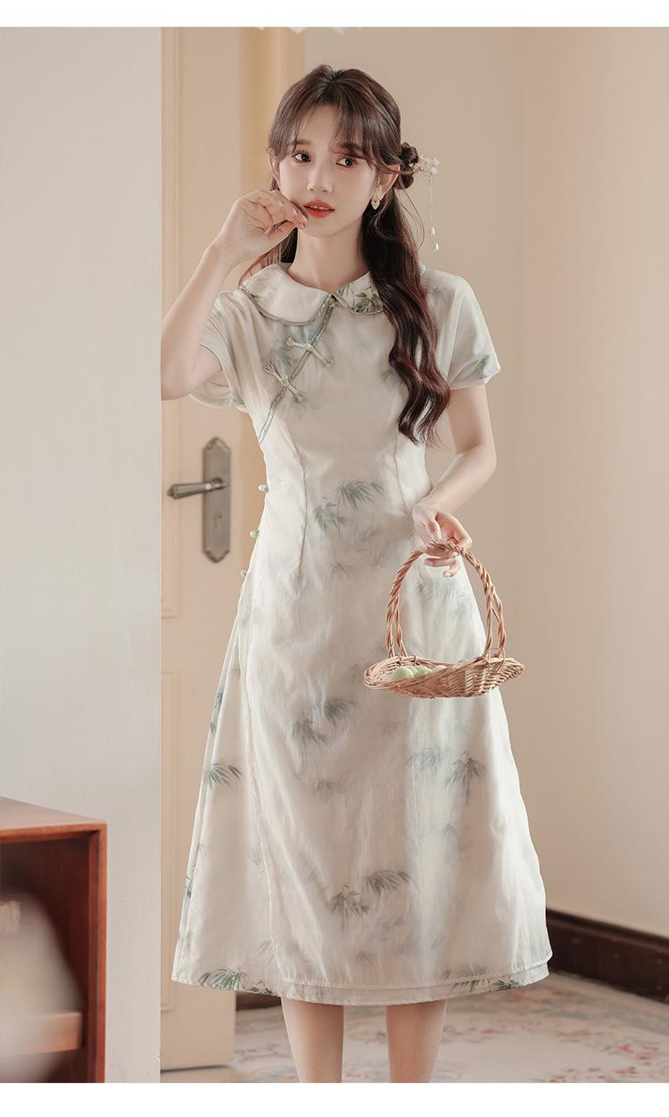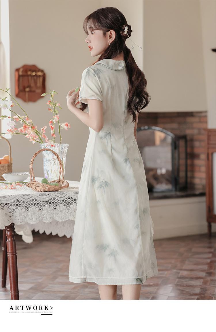 Roupa Feminina 2025 Verão Treze Linhas Novo Breu Bambu Cante Vestido Novo Estilo Chinês Saia Elegante Verde Menta Diário