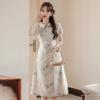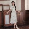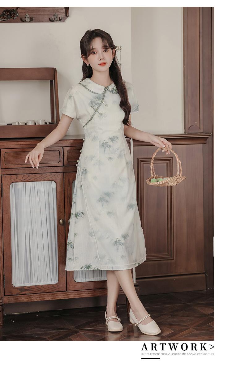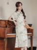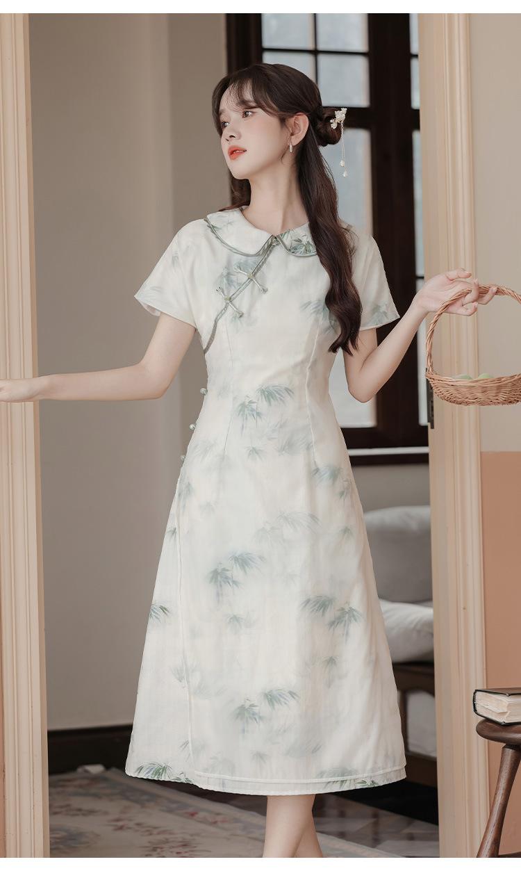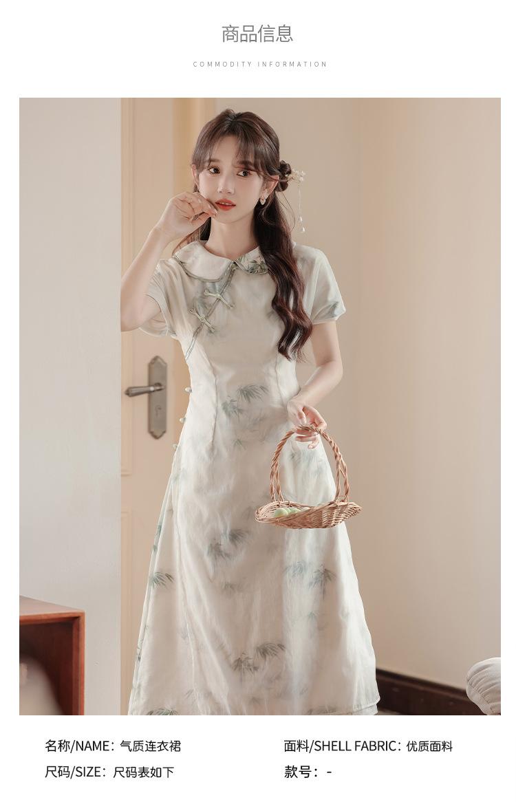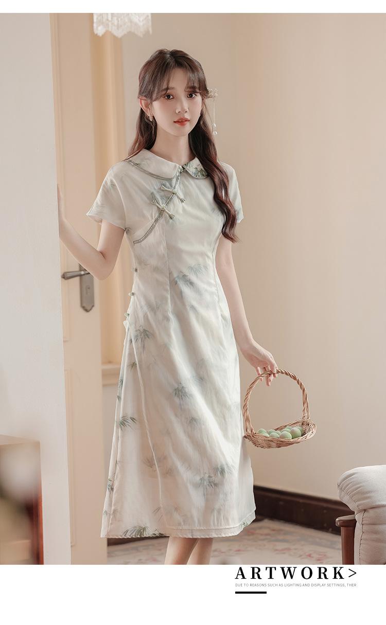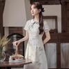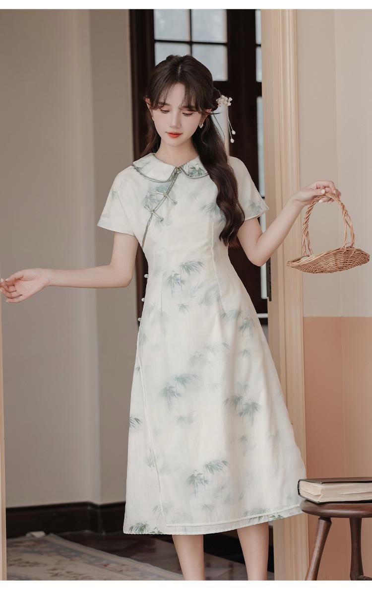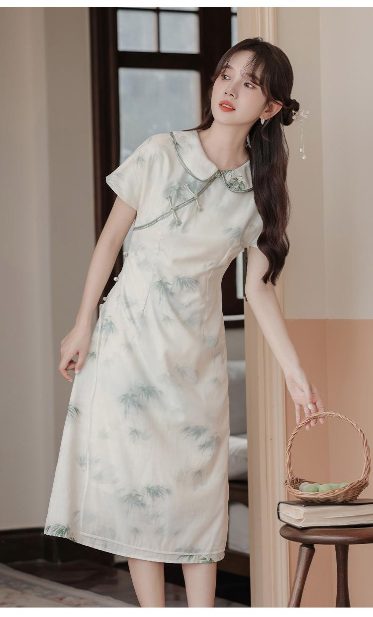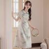 Roupa Feminina 2025 Verão Treze Linhas Novo Breu Bambu Cante Vestido Novo Estilo Chinês Saia Elegante Verde Menta Diário