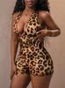 Macacão Estilo Europeu e Americano Transfronteiriço 2025 Verão Novo Moda Feminina Sexy Profundo Decote V Costas Nuas Halter Quadril Estampa de Onça