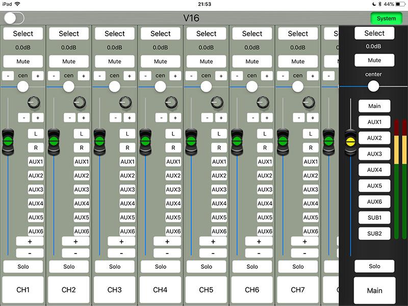 9: Cada canal possui um menu multifuncional, botão de mudo e botão de monitor.