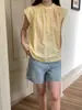 2025 Novo Verão Estilo Coreano Casual Versátil Solto Design de Manga Curta Azul Camisa de Algodão Puro para Mulheres