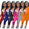 9710# Estação Independente Amazon Moda Feminina Europeia e Americana Mais Vendida Conjunto Esportivo de Duas Peças com Zíper Bordado com Letras