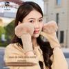 Luvas de tricô estilo coreano com etiqueta de pele de coelho, pulso longo, sem dedos, compatíveis com tela sensível ao toque, outono e inverno femininas quentes para ciclismo à prova de frio touchscreen