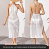 Vestido europeu e americano transfronteiriço de verão novo estilo de praia para férias transparente sexy rendado vazado franzido com fenda slim