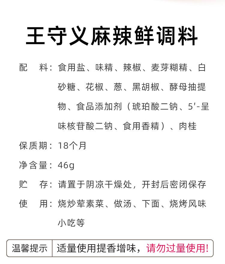 Tempero Fresco Picante Treze Especiarias Wang Shouyi 46g Tempero para Sopa Refogado Churrasco Cozinha Doméstica Condimento Picante