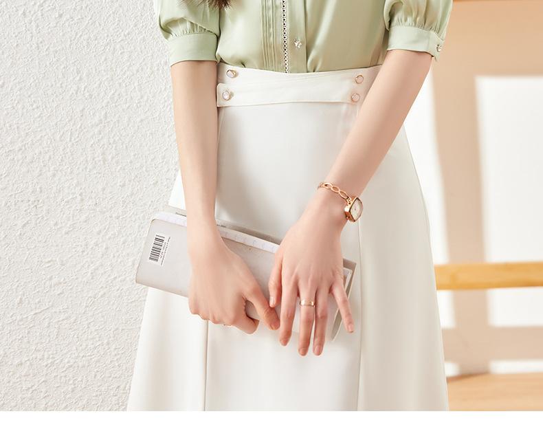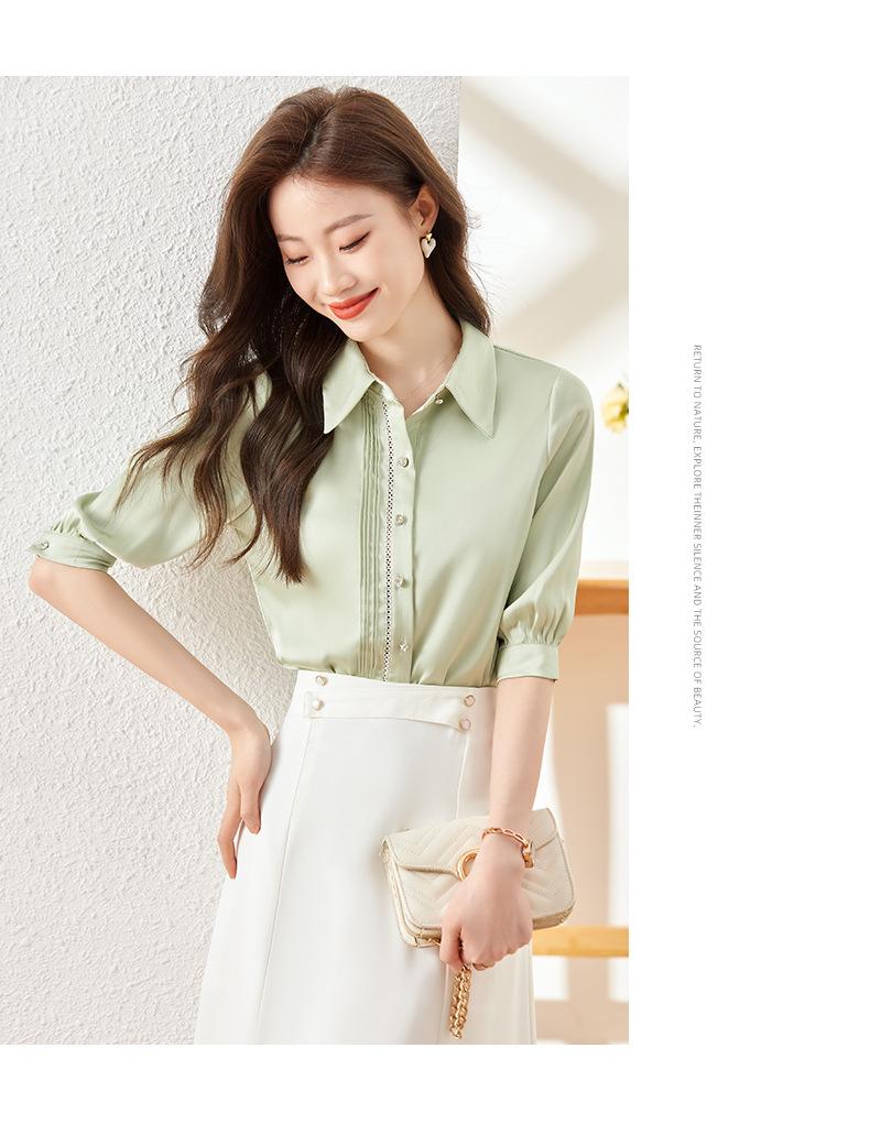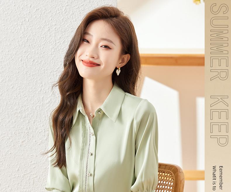 Camisa Verde de Verão de Manga Curta Camisa Feminina Nova Linda Camisa Francesa 25 Anos Verão Casual Versátil Top