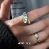 Novo Anel Feminino Elegante Exquisito Zircônia Azul Anel Aberto Vintage Envelhecido Estilo Clássico Moderno High-End