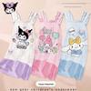 Conjunto de Roupa de Dormir Infantil de Algodão Puro com Suspensório, Algodão Puro Classe A Fino com Suspensório Roupa de Casa (Flores brancas)