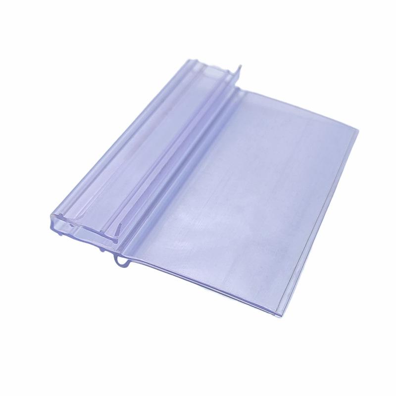 Prateleira de supermercado local, loja de departamentos, etiqueta de preço de mercadoria, etiqueta de gancho de plástico transparente, etiqueta de preço de PVC
