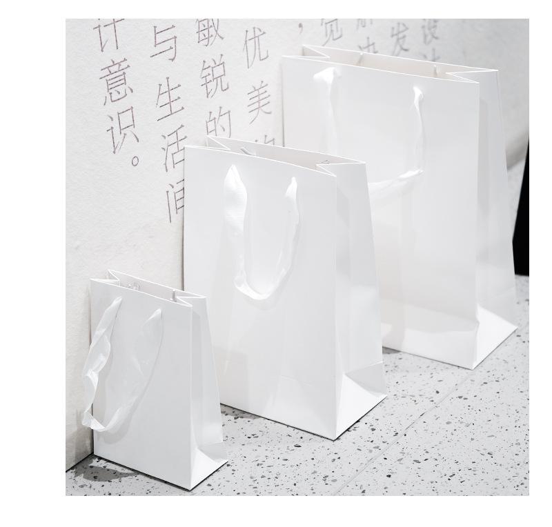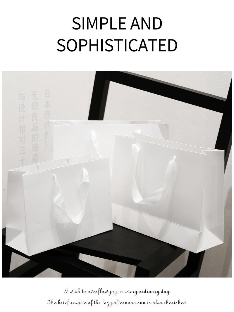 Em estoque sacola de papelão branco loja de roupas femininas embalagem de compras presente sacola de papel atacado sacola de papel engrossado