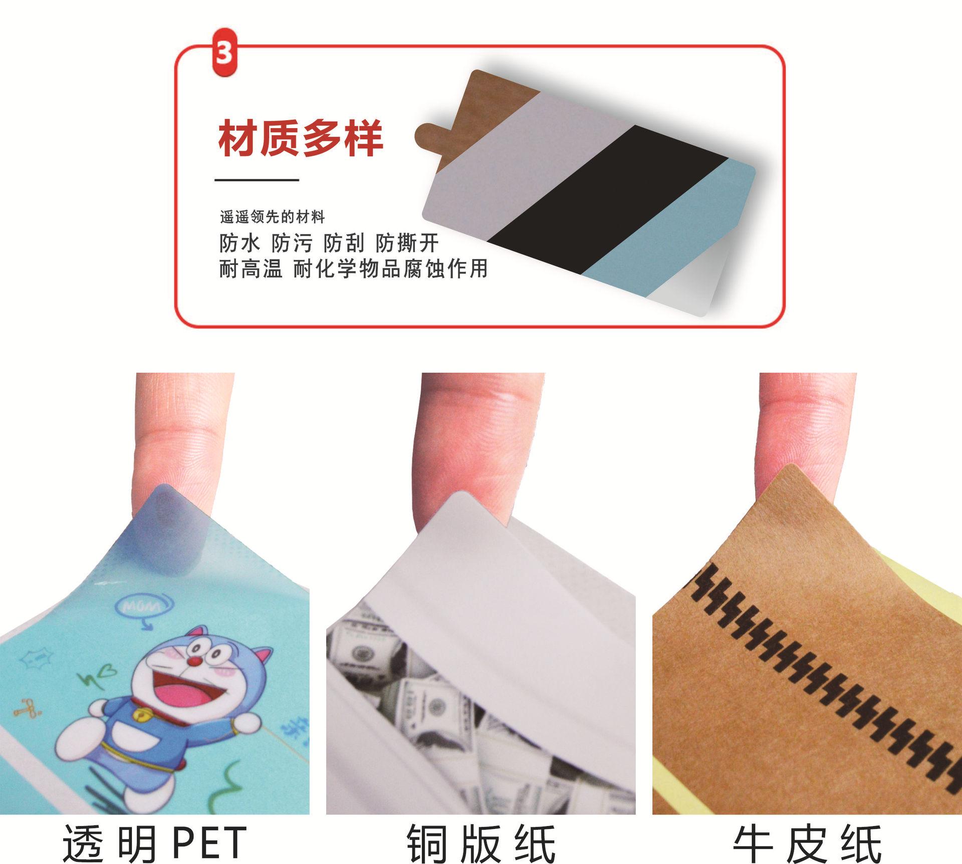 Coated paper + coated 48mm wide; 120mm long 500 stickers